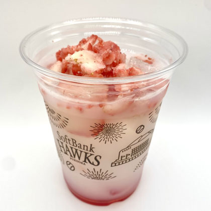こちらもタマスタ筑後の“壁”色に見立てたドリンクが登場!乳酸菌飲料×レモン風味のゼリーで味わいスッキリ☆夏の訪れを感じるドリンクです。