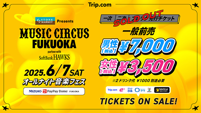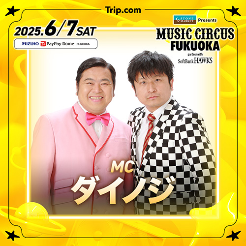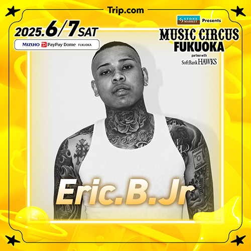 音楽を中心に、ファッション、グルメ、スポーツなど多彩なコンテンツが楽しめるオールナイト音楽フェスティバル「STONE MARKET Presents MUSIC CIRCUS FUKUOKA partner with SoftBank HAWKS」の最終出演アーティストを発表いたします。新たにERIC.B.JrとTokyo Young Visionの出演が決定!MCでダイノジも登場します!また、イベントの開始時刻が19時スタートに変更となり、より長くお楽しみいただけるようになりました。前売りチケットは現在好評販売中です!