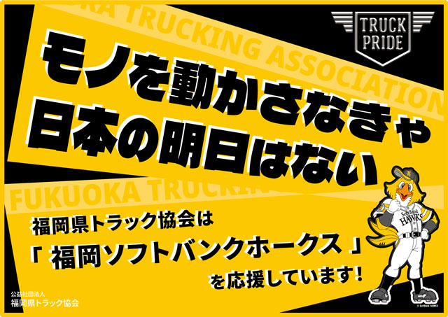 公益社団法人福岡県トラック協会は、福岡ソフトバンクホークスとのオフィシャルスポンサー契約締結に伴い、2025年12月まで毎月ホークスキャンペーンを実施します。