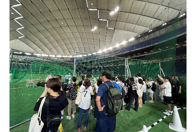 試合開始前にグラウンドで選手の練習を見学できます。