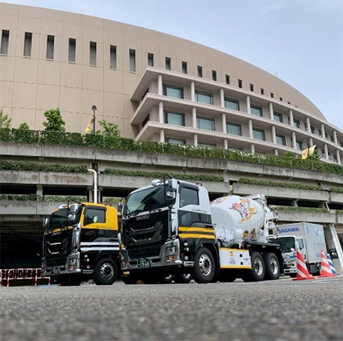 みずほPayPayドーム山笠広場(5ゲート前大階段下広場)にて、ソフトバンクホークスのチームカラーを基調としたホークスラッピングミキサー車2台を展示します。記念撮影や運転席への乗車体験も実施予定です。みずほPayPayドームを背景にホークスラッピングミキサー車と撮影しよう!