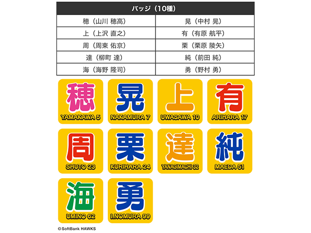 第一弾のラインナップは全10選手。バッジを集めて、お家でも応援を楽しもう!