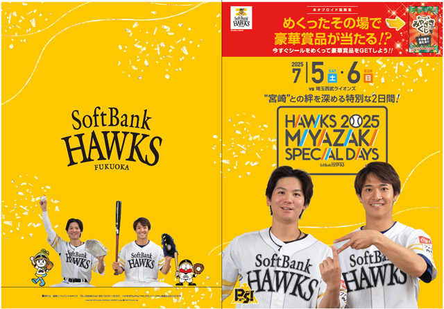 柳町選手と宮崎県出身の緒方選手によるスペシャルインタビューやイベント情報のほか、宮崎の特産品が当たる「ホークスみやざきくじ」も付いています♪