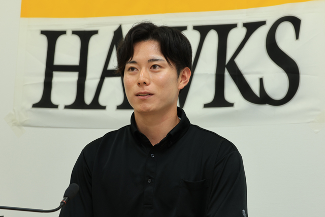 2025年6月20日、育成選手から支配下選手となった川口冬弥投手が記者会見に臨みました。川口投手は社会人野球・独立リーグを経て25歳でホークスに育成選手として入団。プロ1年目の今季はウエスタン・リーグに16試合登板し、防御率0.98をマークしていました。