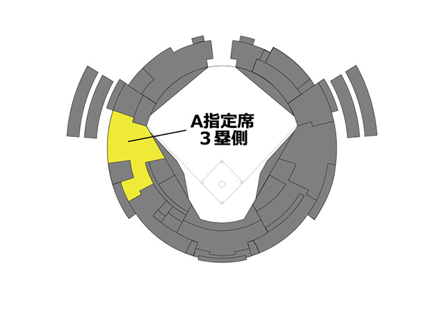 ご購入の際は必ず「勝利のハイタッチ権利付チケット」をお選びください。通常のA指定席3塁側をご購入いただいても、「勝利のハイタッチ参加権利」はついておりません。