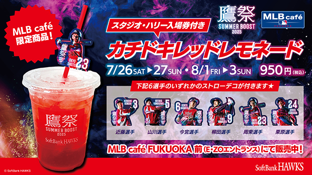 鷹祭 SUMMER BOOST試合日はMLBcaféにて販売の「スタジオ・ハリー入場券付きカチドキレッドレモネード」購入で入場可能に!