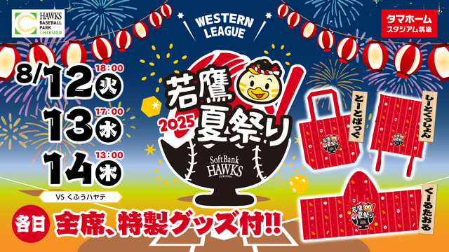【8月】全席、特製グッズ付!「若鷹夏祭り」チケットも好評販売中!