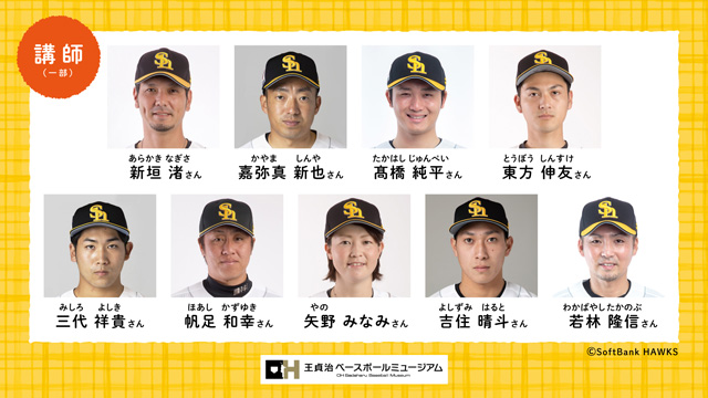 8月は、元プロ野球選手に会える!ホークスジュニアアカデミー講師が「王貞治ベースボールミュージアム」で指導!野球経験者への本格的な指導から、野球初心者へは遊び感覚の指導など、お子さまのレベルに合わせた指導でお楽しみいただけること間違いなし!日頃から疑問に思っていることやわからないことなどをコーチに聞ける絶好のチャンス!ぜひこの機会にお越しください♪