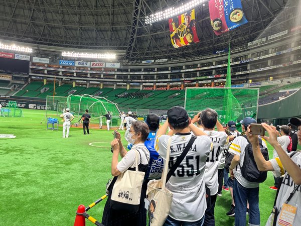 試合開始前の時間にグラウンドで選手の練習を間近で見学できます。