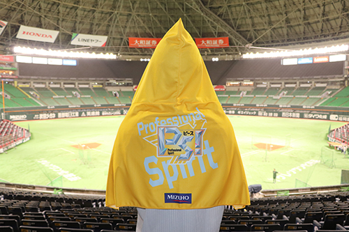 終盤戦スローガン「PS!」が大きくデザインされたフード付タオルを入場者全員に配布します。