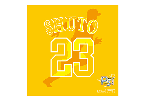 終盤戦期間中、「PS!」のロゴが大きくプリントされたTシャツを試合前練習でホークス選手が着用します。