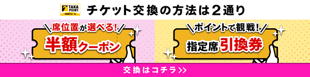 引換場所などの詳しい情報はチケットと一緒に発券される引換券をご確認ください。(QRチケットをご利用のお客様は試合当日、画面右上「特典・詳細」ボタンをご確認ください。)