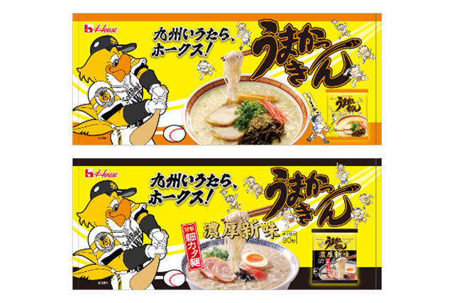 ハウス食品は、九州でお馴染みとんこつ味の袋麺「うまかっちゃん」とホークスがコラボした『九州コラボ!うまかっちゃん 福岡ソフトバンクホークス オリジナルコラボグッズを当てよう!!キャンペーン』を2025年9月1日(月)~10月31日(金)の期間で実施します。対象製品1個以上を含む、合計550円(税込)以上購入し応募すると、ホークス選手サイン入りユニフォームや限定コラボグッズなどの賞品が、抽選で合計408名に当たります。