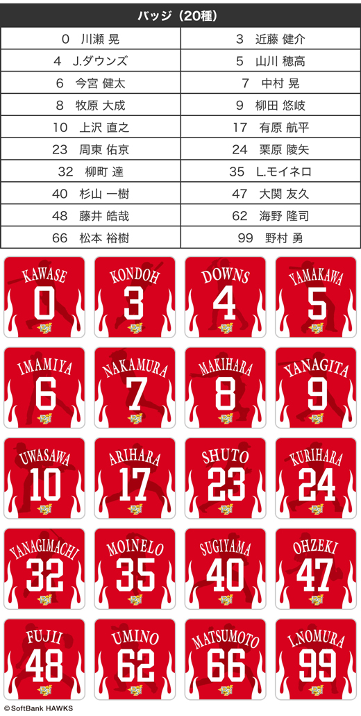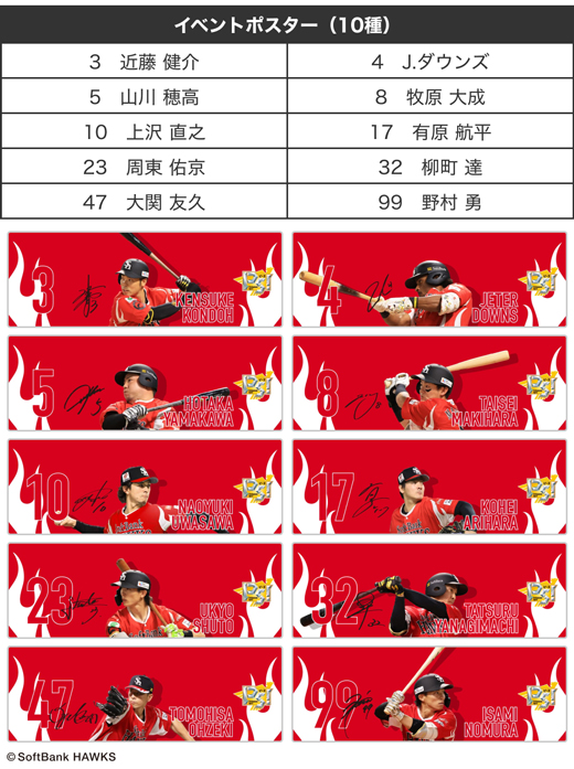 近藤選手、山川選手、今宮選手、柳田選手、周東選手、栗原選手