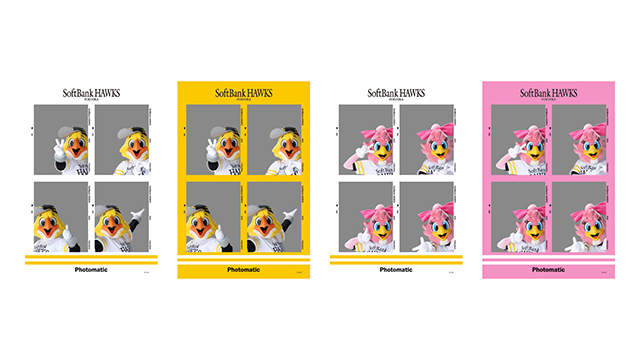 9月13日(土)より、BOSS E・ZO FUKUOKA 3Fに設置中の韓国発セルフフォトブース「Photomatic(フォトマティック)」に、福岡ソフトバンクホークスの選手ツーショットフレーム(全8種類)が期間限定で登場!各選手の個性が光るポーズデザインは必見です!さらに、公式キャラクターのハリーホーク、ハニーホークとツーショット風の写真が撮影できるオリジナルフレームも同時登場!ここだけの記念ショットをぜひお楽しみください。