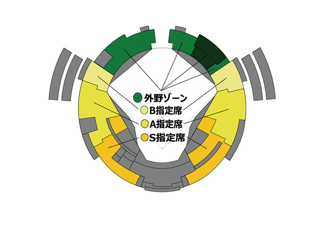 | 外野ゾーン (外野指定席or ホークス応援指定席) |