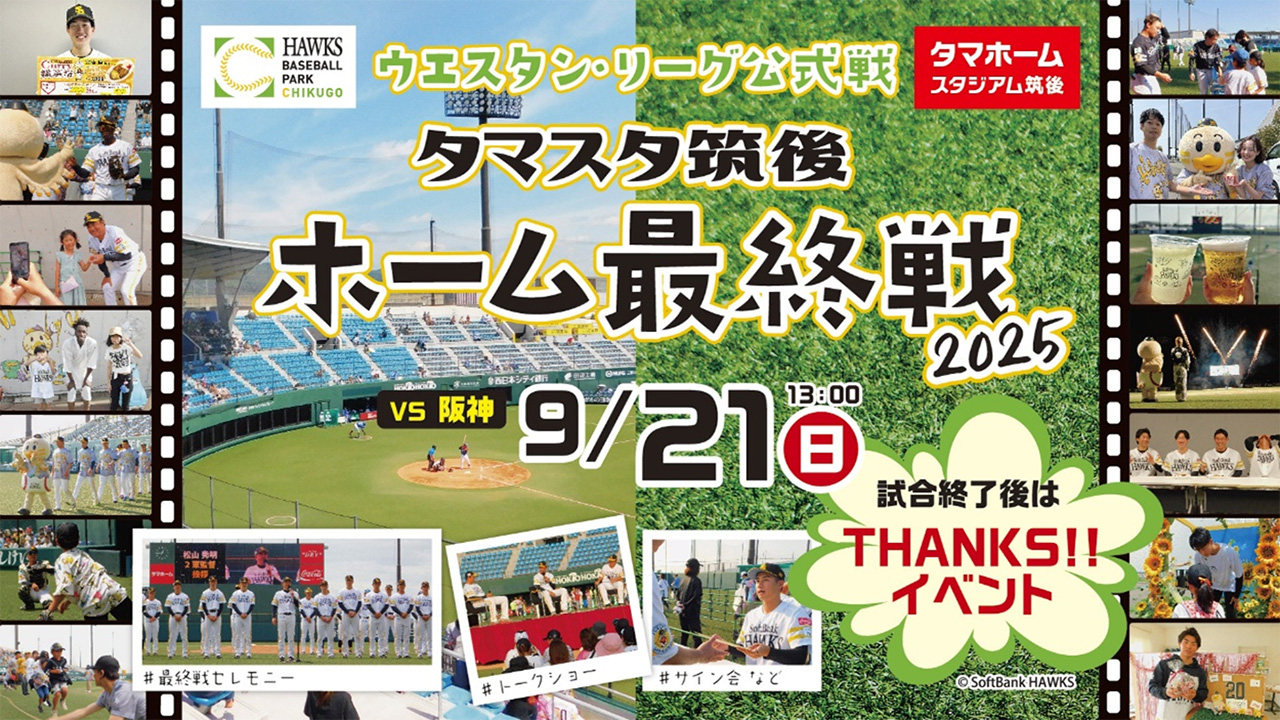 タマホーム スタジアム筑後で開催する9月21日(日)の阪神戦は、今季のホーム最終戦です。1年間の皆さまからの温かいご声援に感謝して、試合後にはグラウンドでファン感謝イベントを実施します!