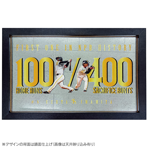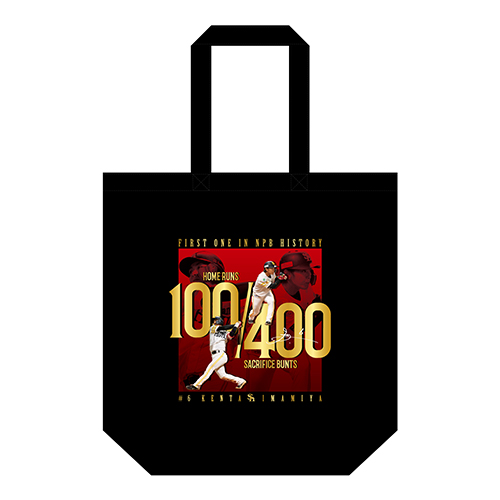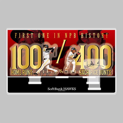 今宮健太選手が、8月22日(金)の北海道日本ハム戦で通算100本塁打、8月27日(水)の楽天イーグルス戦で通算400犠打を達成し、NPB史上初の「100本塁打&400犠打」ダブル達成を成し遂げました。これを記念し、ゴールドの「100」と「400」の数字を大きく掲載し、今宮選手のバッティング&バントシーンの姿を配置したデザインのグッズをご用意しました。前人未踏の記録達成の記念に、ぜひお求めください!