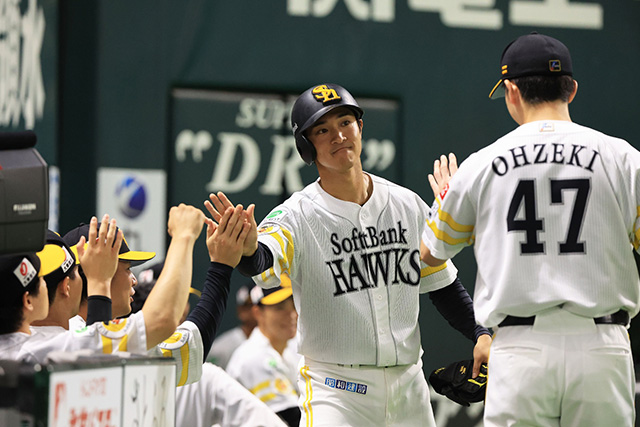 自身初タイトル。プロ6年目の今シーズンは日本生命セ・パ交流戦でMVP、終盤まで牧原大成選手との首位打者争いを繰り広げるなど、大きく飛躍を遂げました。