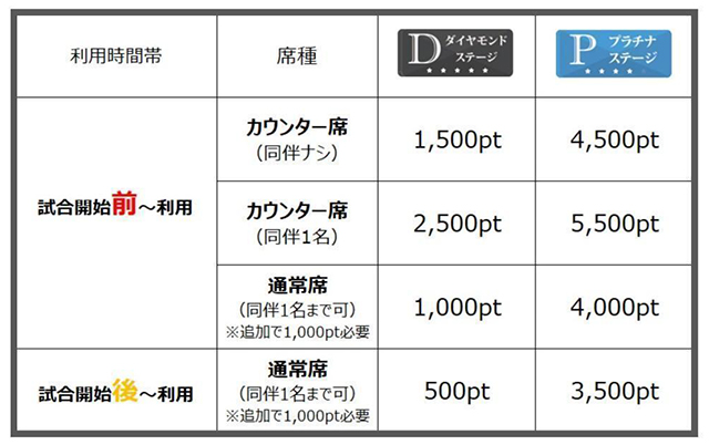 ご希望の利用時間帯・席種により、必要ポイント数が異なります。