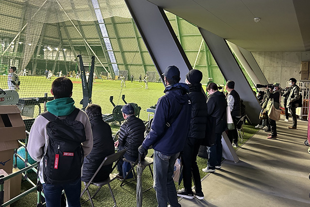 - 選手の練習終了後にグラウンドでのバッティング体験
