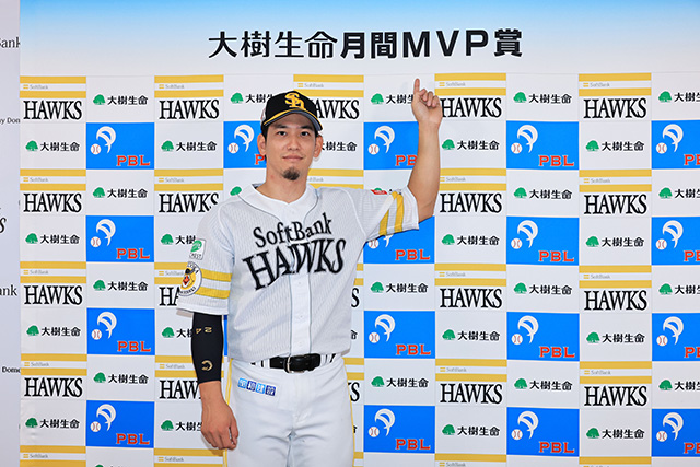 栗原陵矢選手が9・10月度の「大樹生命月間MVP賞」パ・リーグ打者部門に選出されました。9・10月は24試合に出場し、打率.359 安打33 本塁打3 打点20 の好成績。チームのリーグ優勝に大きく貢献しました。