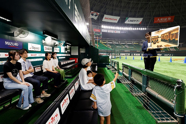 ドームの魅力を最大限に!選手たちが座っているベンチやロッカールーム、ブルペン等をご案内!