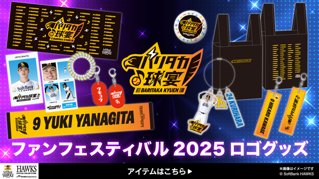 11月24日(月・休)のファンフェスティバル 2025は、ファナティクス・ジャパン合同会社の特別協賛のもと「打って、歌って、踊って!バリタカ球宴 Presented by Fanatics」として開催します。選手のビジュアルや当日のイベント内容お得な情報などを大公開!今年は選手たちが、「めんたいRockers」・「とんこつSparks」の両チームに分かれ、対決形式で各企画に臨みます!事前にチェックして、バリタカ球宴で選手たちと一緒に盛り上がろう♪みずほPayPayドームで皆さまのご来場を心よりお待ちしてます。