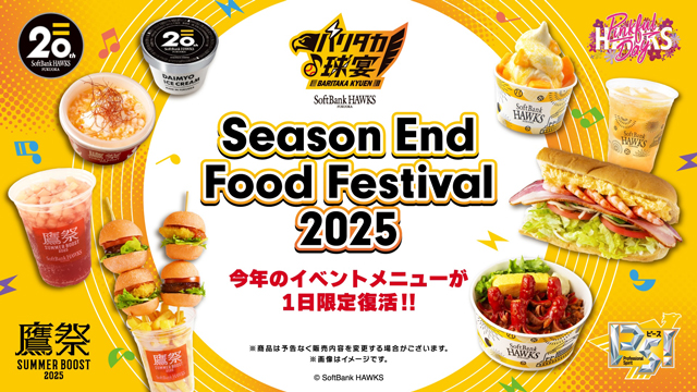 ファンフェス限定!今シーズンのイベントメニューを復刻販売します!20周年記念デーや鷹祭 SUMMER BOOSTの限定グルメを、シーズン最後にもう一度味わえるチャンスです!