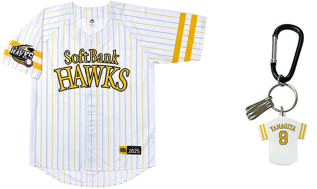 ファンフェス後半の紅白戦で選手が着用するユニフォームが登場!HAWKS公式オンラインストア予約販売(店頭受け取り)分には、予約特典としてユニフォーム型キーホルダーが付属します♪お揃いのユニで応援しよう!