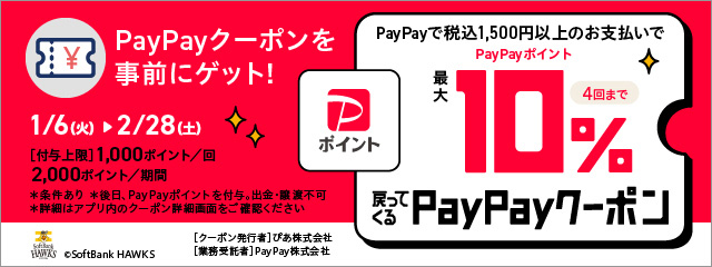 タカチケットでPayPay支払いをすると、購入金額の最大10%のPayPayポイント(最大1,000ポイント)還元!超おトクなクーポンを配布中♪