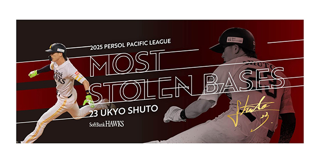 1回2,000円で2025シーズンの記録達成グッズが必ず当たるスロット!周東選手の200盗塁や近藤選手の100本塁打、今宮選手の400犠打など豪華なグッズが盛りだくさん!S等には選手着用済みアパレルが♪