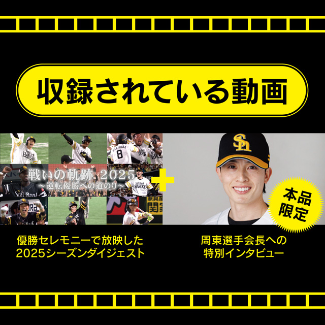 激動の2025シーズンの戦いの軌跡をいつでもお手元に。キーホルダーのレコード部分にスマートフォンをかざすと、2025年9月30日(火)試合後に行った優勝セレモニーで放映したダイジェスト映像の動画を見ることのできるNFCタグキーホルダーが登場。ここでしか見られない周東選手会長の特別インタビュー動画も収録!公式オンラインストアにて、11月25日(火)より1,000点限定で予約販売いたします。