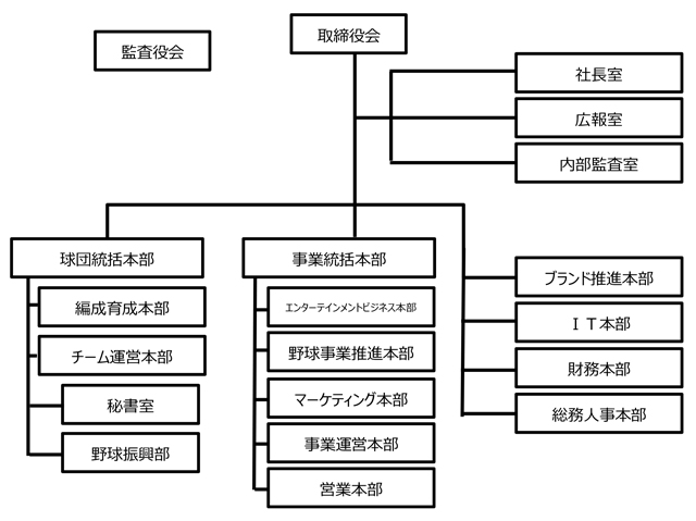 球団統括本部において、チーム運営部とチーム戦略室を統合し、「チーム運営本部」を新設する。チーム運営本部内を「チーム運営部」「チーム戦略部」の2部体制とする。