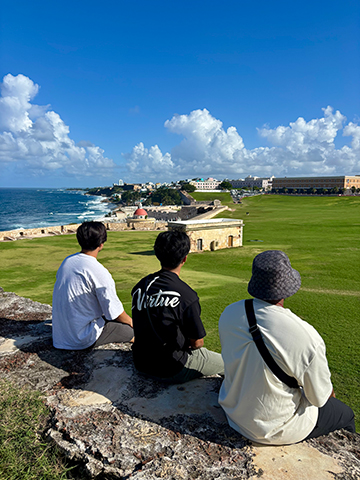 要塞の高台から見渡すサンフアンの街並みは圧巻で、プエルトリコ滞在中でも特に印象深い景色でした。歴史の重みとカリブ海の青さが重なり合うこの場所は、4人にとって忘れられない思い出となりました。