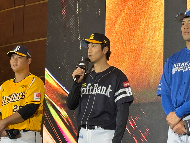 会見には、福岡ソフトバンクホークスから柳町達選手、北海道日本ハムファイターズ・野村佑希選手、中信ブラザーズ・陳俊秀選手、味全ドラゴンズ・林凱威選手が出席。各チームの選手とも、台湾で交流試合を行うことへの期待と意気込み、そして台湾・日本それぞれの野球ファンの熱量について言及していました。