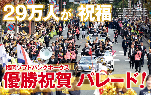 表紙、巻頭インタビューには大関友久投手が登場。2025年シーズンはキャリアハイの13勝を挙げ、自身初のタイトルとなる勝率第一位投手賞に輝いた左腕。チームとしてはリーグ3連覇&日本一連覇を目指す2026年シーズンですが、個人としての“目標”は…!?2025年シーズンを振り返りつつ、2026年シーズンへの意気込みを語ってくれています。
