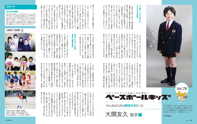 また、今号では『月刊ホークス』大人気企画「ベースボールキッズ」でも大関投手を取り上げています。ここでしか見られない幼少期時代の写真とともに、ご両親のお話から左腕のルーツを紐解きます。