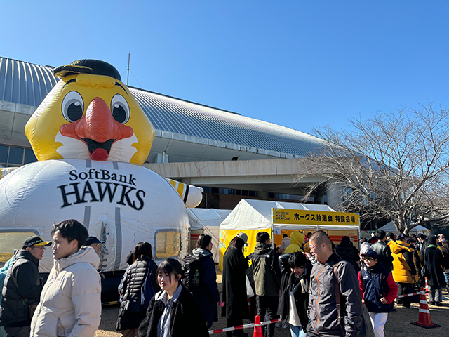 また、キャンプ期間中にホークスビレッジ内で飲食やグッズをお買い上げいただいた方、公式ファンクラブ「クラブホークス」へ新規ご入会いただいた方を対象に、宮崎特産品やホークスグッズなど豪華景品が当たる抽選会を実施!皆さまのご来場をお待ちしております。