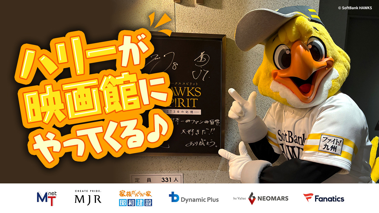 12月26日(金)に公開する長編ドキュメンタリー「映画 HAWKS SP!RIT -273日の記憶-」の公開を記念して、12月28日(日)限定でハリーホークとハニーズが福岡市内の映画館にやってきます!映画の上映終了後、ハリーホークとの写真撮影やプレゼントじゃんけん大会をお楽しみください!