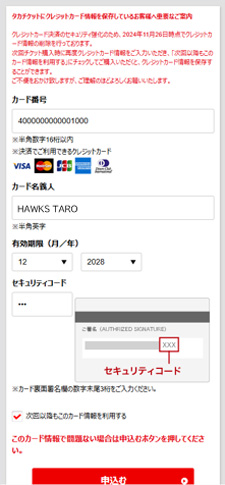 メンテナンス後、クレジットカード決済をご希望の場合は、最初のチケット購入時にあらためてクレジットカード情報をご入力ください。