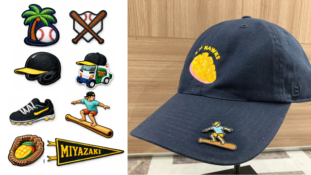 宮崎キャンプにて新登場する3デザイン×3カラーの対象キャップをご購入いただいたお客様に、オリジナルワッペンをプレゼント!お気に入りのキャップに、さらに個性をプラスできるチャンスです!数量限定の為、なくなり次第終了となります。お早めにご利用ください!
