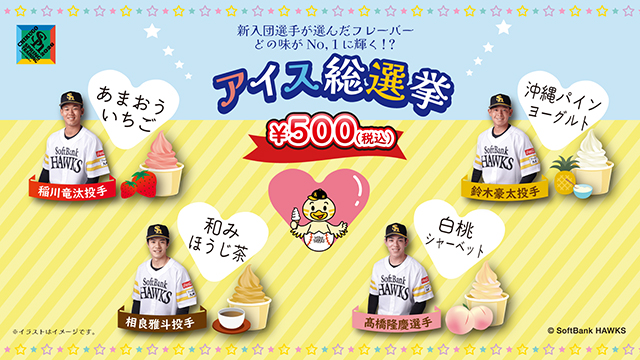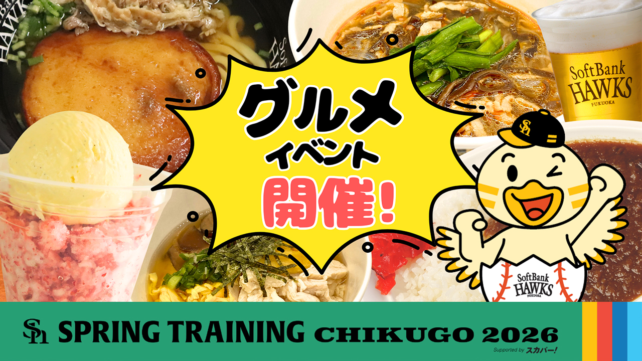 「福岡ソフトバンクホークス スプリングトレーニング2026 in 筑後 Supported by スカパー!」では、新入団選手4名が参加するアイス総選挙をはじめ、グルメスタンプラリーなど、参加型グルメ企画を実施します☆