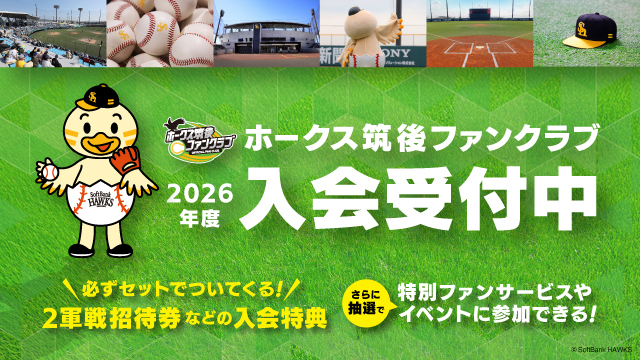 タマスタ筑後での試合観戦は、ホークス筑後ファンクラブ入会でさらにおトクにお楽しみいただけます♪
