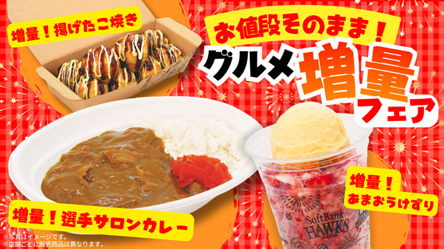 人気メニューが、期間限定でボリュームアップ!食べ応え抜群のグルメで、観戦気分をさらに盛り上げよう☆