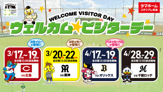 今シーズンも、ビジターチームの皆さまにタマスタ筑後での観戦を楽しんでいただける「ウェルカム☆ビジターデー」を開催します!