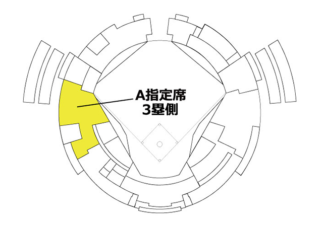 ご購入の際は必ず「勝利のハイタッチ権利付チケット」をお選びください。通常のA指定席3塁側をご購入いただいても、「勝利のハイタッチ参加権利」はついておりません。