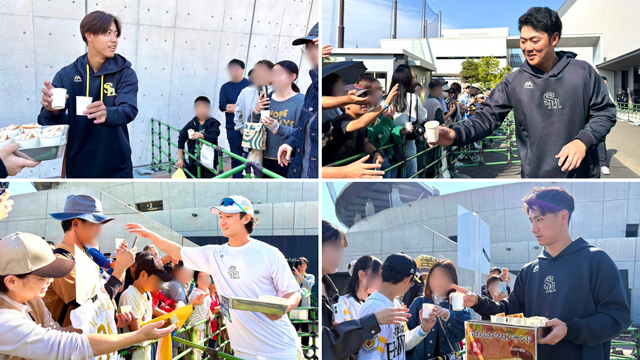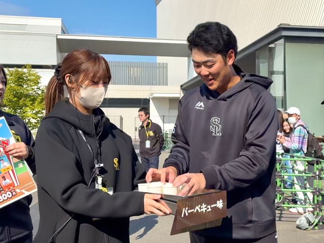 選手が皆さまに、手渡しで飲食をふるまいます!実施時間、実施場所は当日のお楽しみに☆
