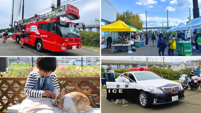 はたらく車の展示や動物ふれあいコーナー、フリーマーケットなどを実施します☆