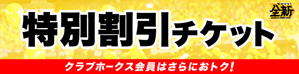 ご購入の際は必ず「2026年公式戦 ホリデー・イベント特別割引チケット」をお選びください。通常のS指定席、A指定席、外野指定席、ホークス応援指定席をご購入いただいても、割引価格ではご購入いただけません。またお支払方法はクレジットカード・PayPay限定となります。